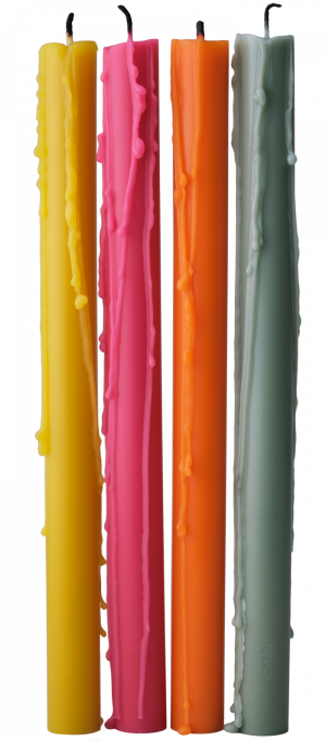 3. Wax leaves marks on surfaces, so better use a candlestick. Personally, I prefer flat coasters like ours. After burning, the candlestick turns into an abstract painting. If you use our candlestick, insert all the candles tightly at once and make sure that they stand evenly, otherwise the candles can quickly melt each other.